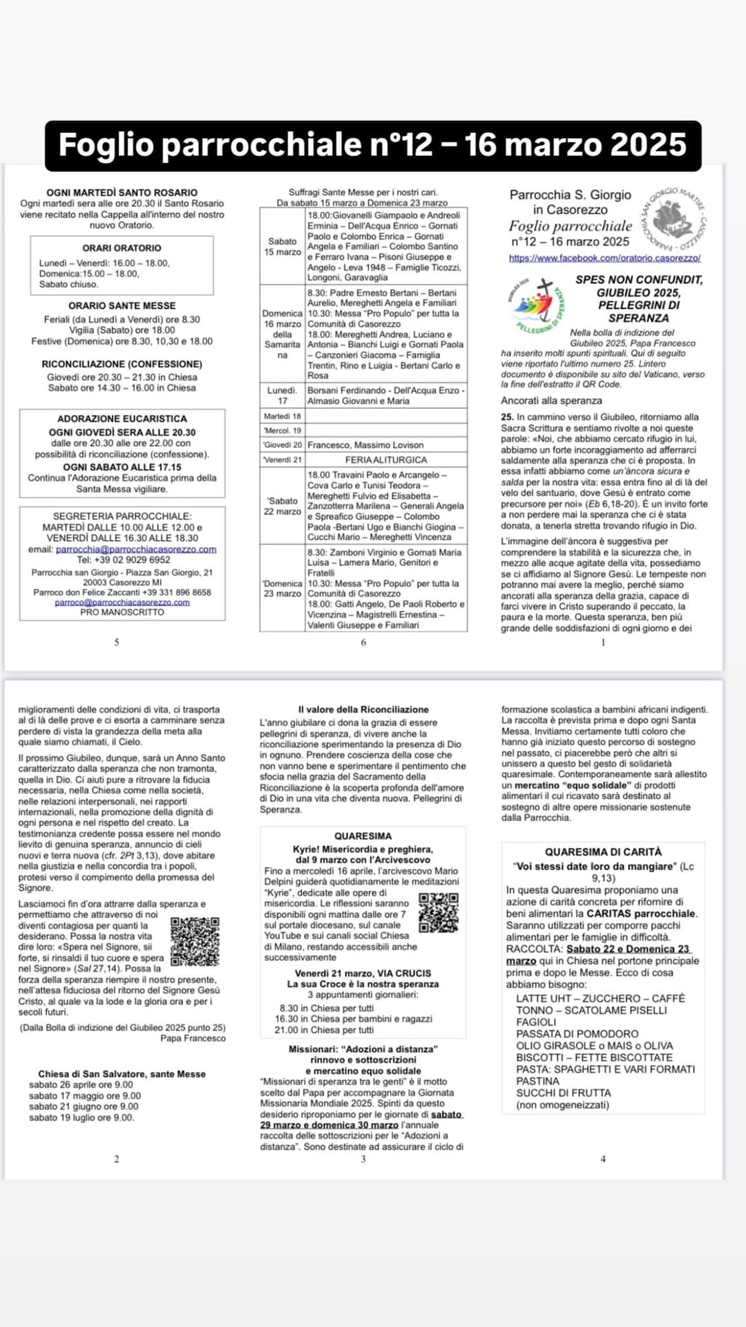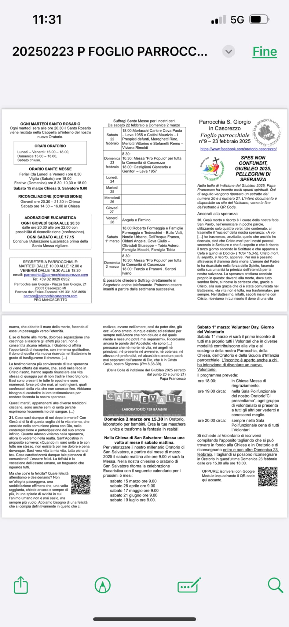 Foglio Parrocchiale