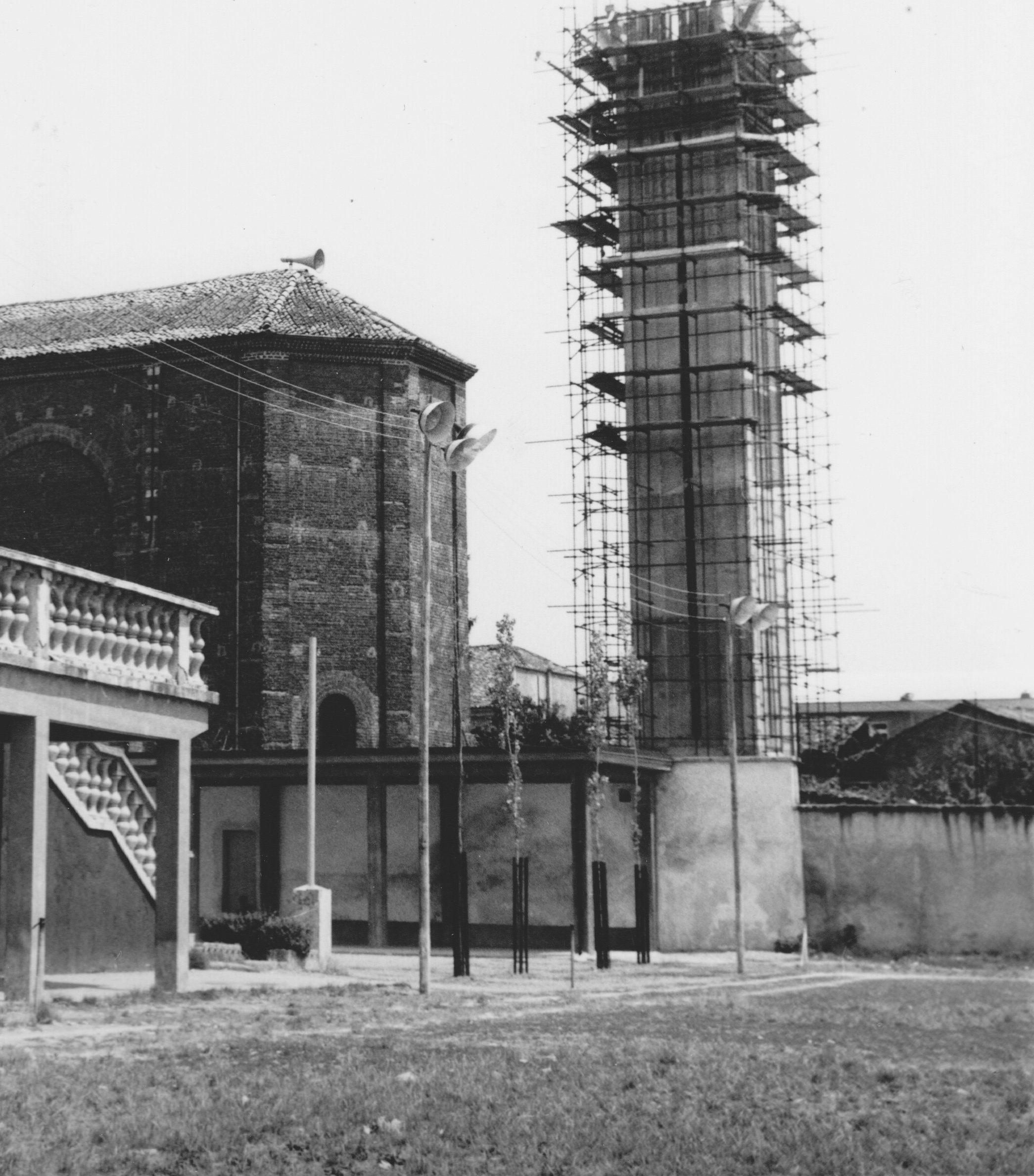 1966 Su progetto dell’architetto Sirtori, venne costruito il nuovo campanile in cemento armato con uno stile dissimile da quello della chiesa.